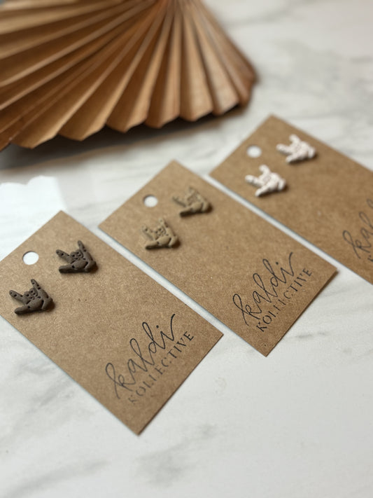 i love you sign studs // handmade polymer clay earringsRegular price $12.00 USDRegular priceUnit price per-