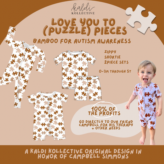 LOVE YOU TO [PUZZLE] PIECES bamboo pajamas // SHORTIE, ZIPPY, or SHORT SLEEVE TWO-PIECE *100% of profits donated to our friend Campbell*Regular price $34.00 USDRegular priceUnit price per-