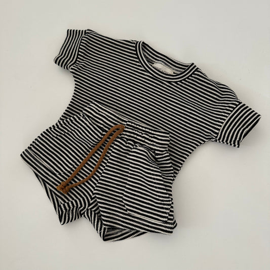 navy striped ribbed bamboo pajamas // SHORT-SLEEVE AND SHORTS SET (sizing up to 9/10)