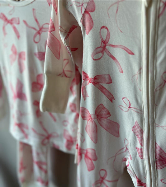 pink bows bamboo pajamas // ZIPPY or LONG-SLEEVE TWO-PIECE SET