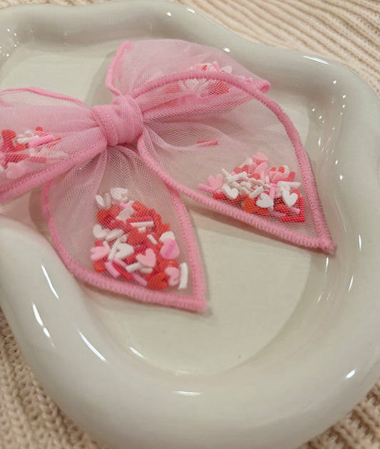 pink conversation heart + sprinkles shaker bow