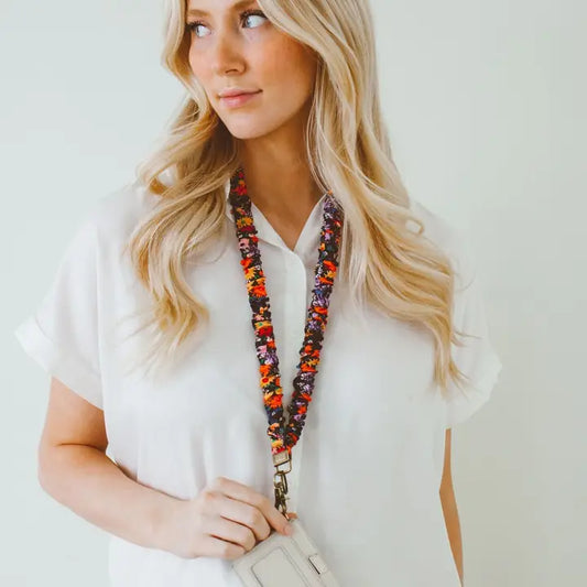 scrunched fabric lanyard keychain // woodland