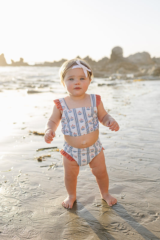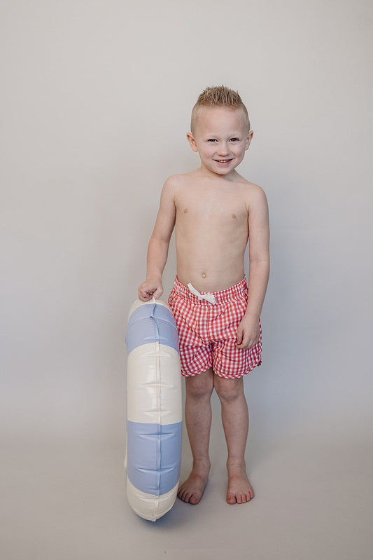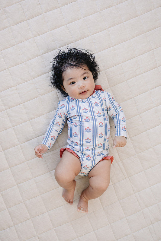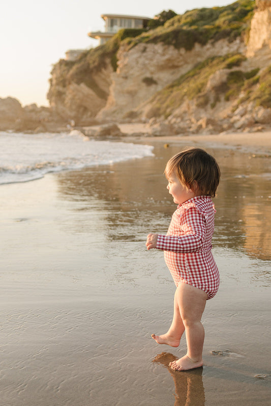 gingham long-sleeve ruffle zipper one-piece swimsuit