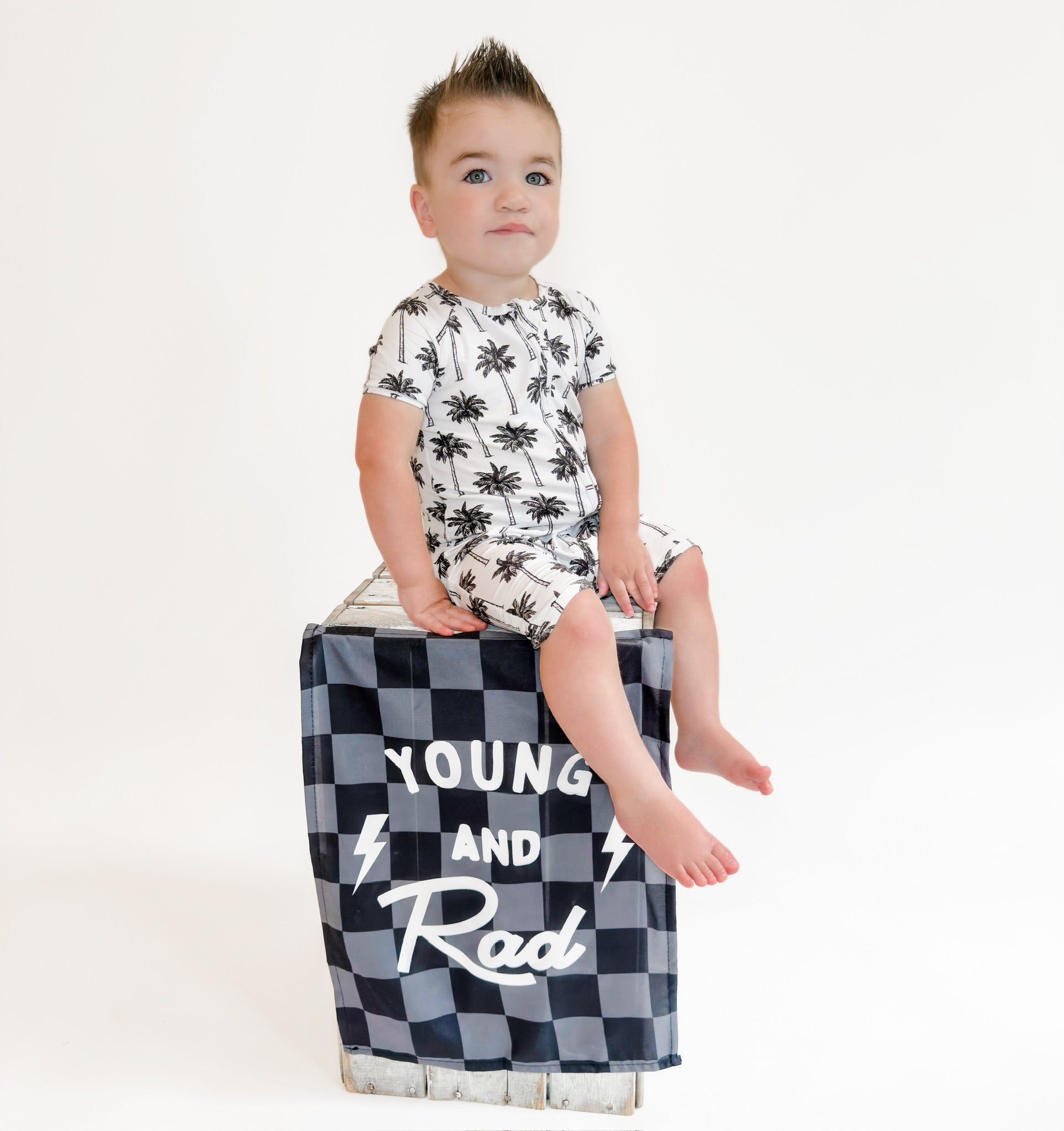Bring the island breeze to your little one’s wardrobe with our Bamboo Shorty Romper | Palm Style White.