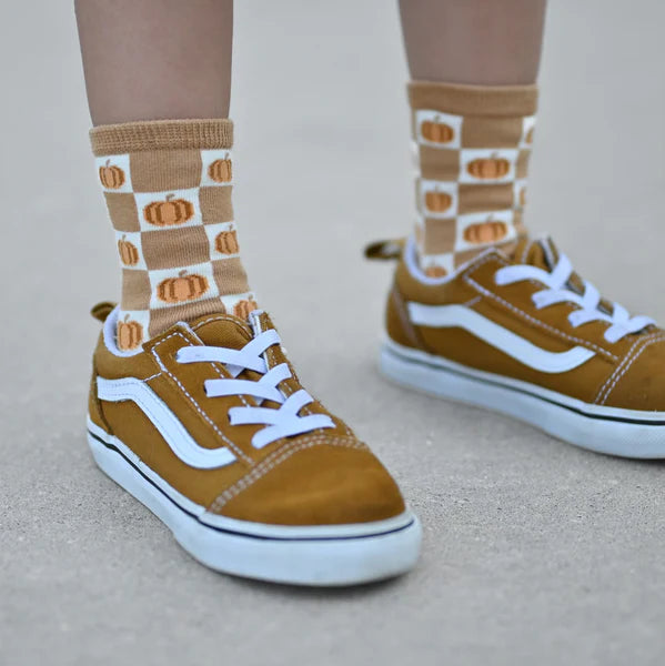checkered pumpkin socks
