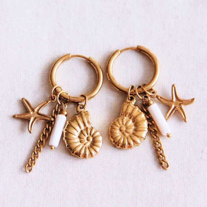 i am so in love with these! each earring has 4 different charms on it which creates such a fun look. you could also take off some of the charms if you wanted to swap up the design. these are premium stainless steel and are 14mm in diameter
