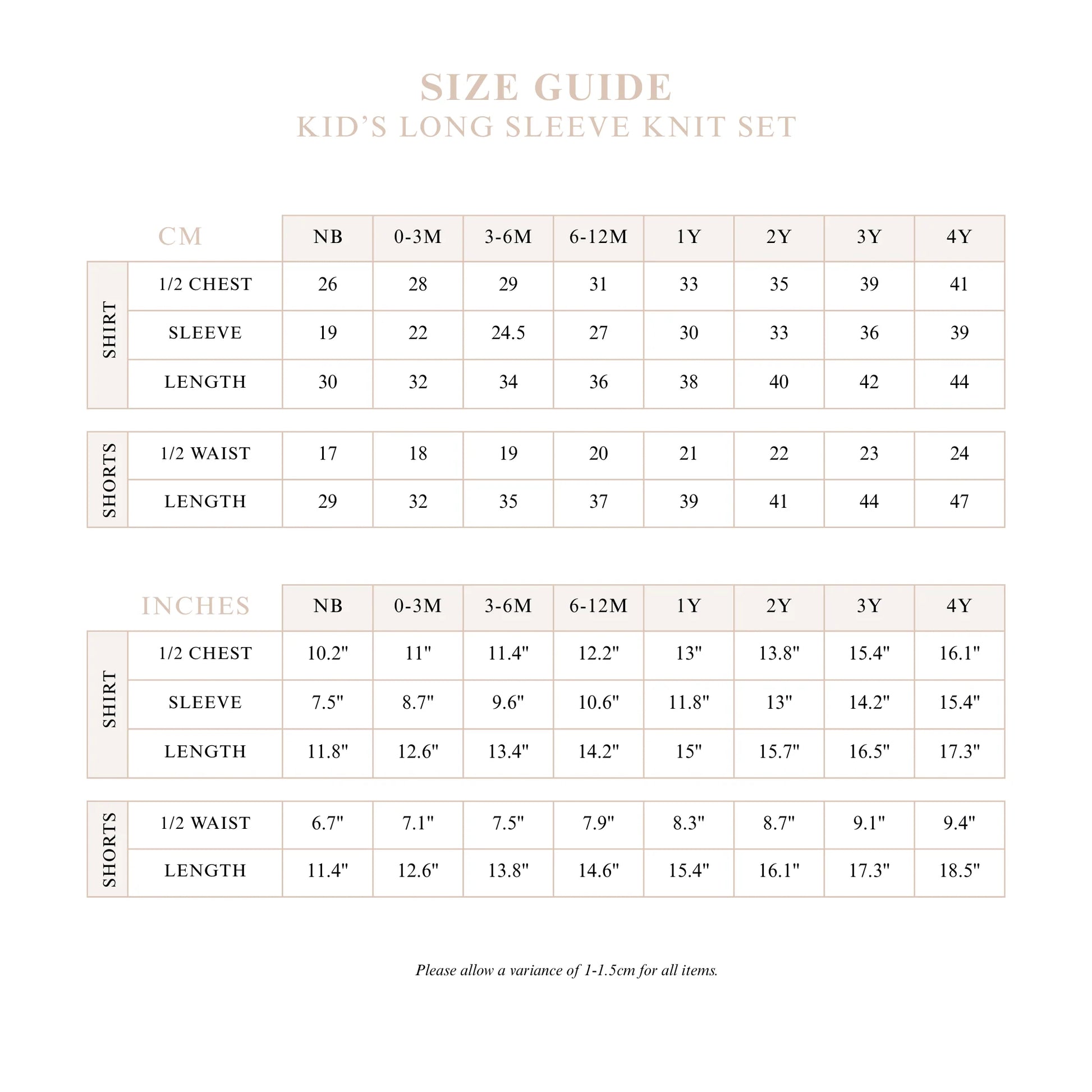 Due to the nature of knitted items, please allow a variance of 1-1.5cm for all items.