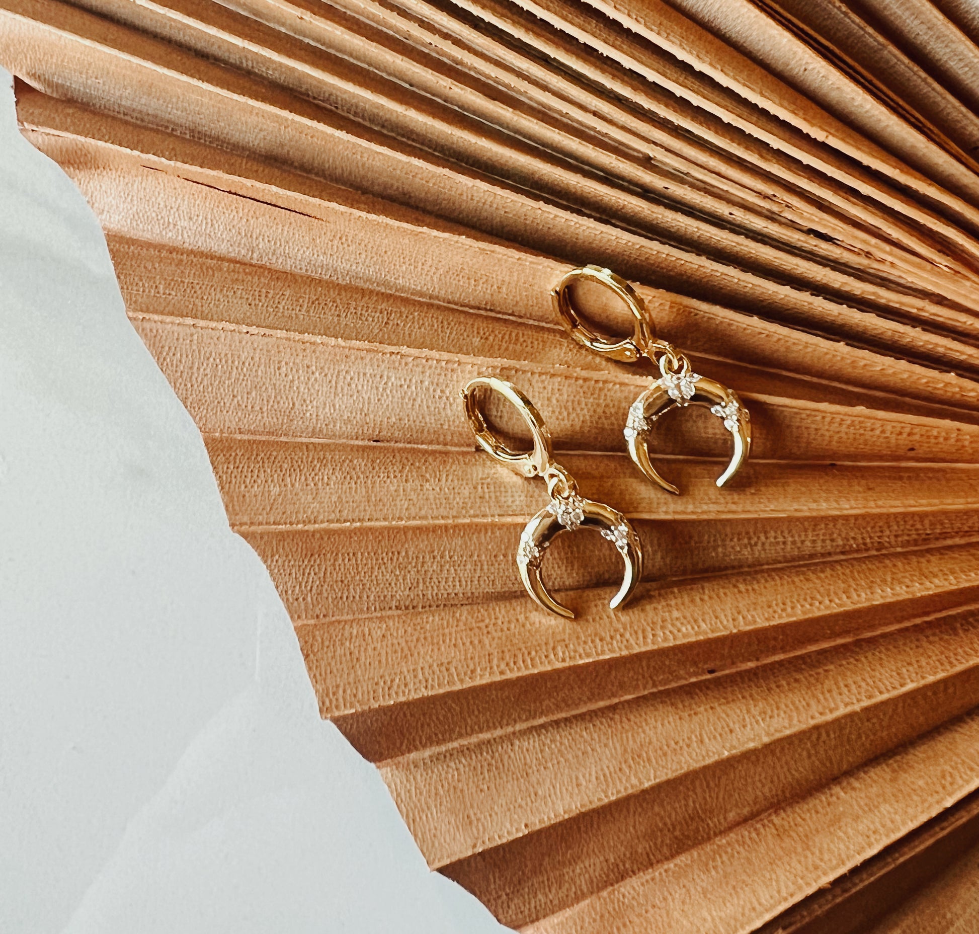 huggies have become a favorite of mine and i wear them ALL THE TIME!!! they are super easy to snap on and off. i love that they clasp all the way together so that when i am working / on the phone there is no earring back that stabs me in the head! haha! these are hand-picked charms assembled by ME ! these are gold plated :)